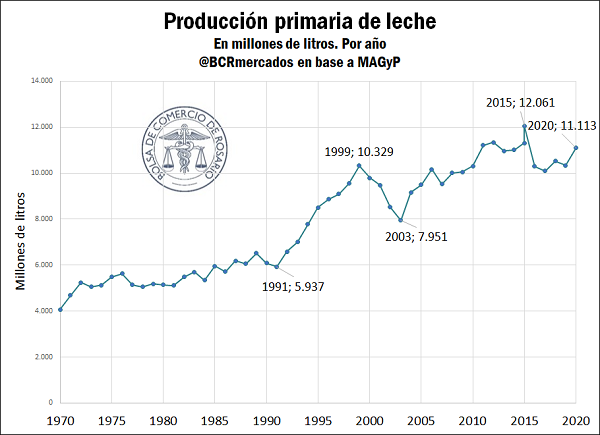 El fatídico año 2020 tuvo un impacto recesivo muy fuerte sobre la economía nacional. No obstante, la producción primaria de leche mostró un crecimiento del 7,5% interanual alcanzando su nivel de producción más alto desde el 2015, el año de máxima producción histórica.