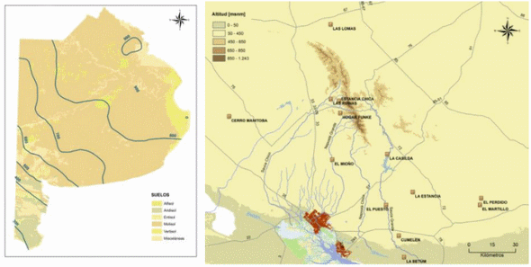 Las características edáficas y climáticas se resumen en la Tabla 2. Desde el punto de vista edafoclimático se pueden diferenciar dos ambientes, el subhúmedo (próximo a la Sierra) y el semiárido (sectores próximos a Bahía Blanca y la costa).