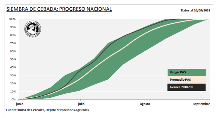 En el sudeste de Buenos Aires, región que aportó el 42,5 % del área sembrada a nivel nacional, la cebada presenta una condición de cultivo que varía entre buena y excelente. Además, las precipitaciones que se registraron durante los últimos quince días mantienen un estado hídrico adecuado a óptimo, con presencia de algunos excesos hídricos sobre ambientes bajos.