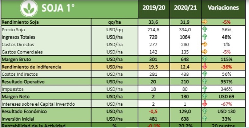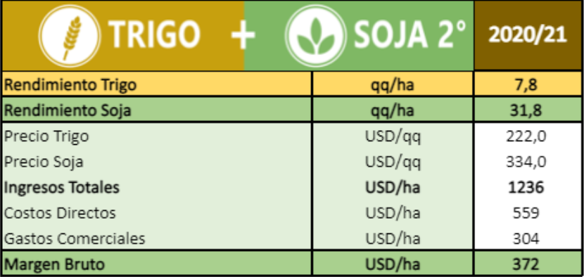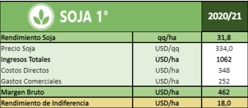 El margen bruto para la campaña 2020/21 alcanzó los USD 449/ha, representando un incremento del 105% respecto al ciclo previo.