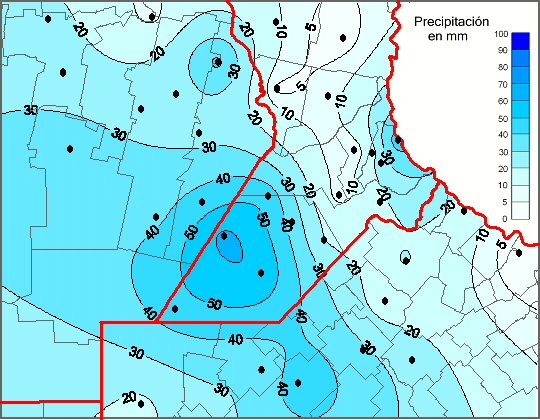 En Córdoba las lluvias superaron los 15 mm en el 63% de su territorio. Las lluvias más importantes estuvieron en las áreas que limitan con el suroeste santafesino.