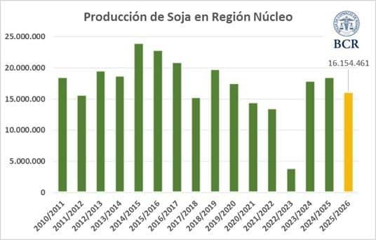 Además, el resultado también quedaría por debajo del promedio de los últimos 15 años, que se ubica en 17,4 millones de toneladas para la región núcleo.