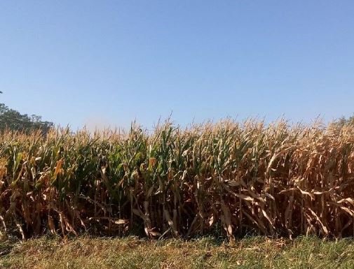 Maíces con manchones secos por falta de agua y calidad del suelo.
