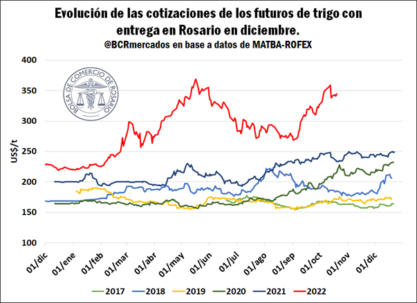 El precio futuro del trigo a cosecha es más alto que el disponible