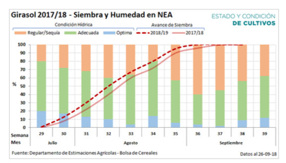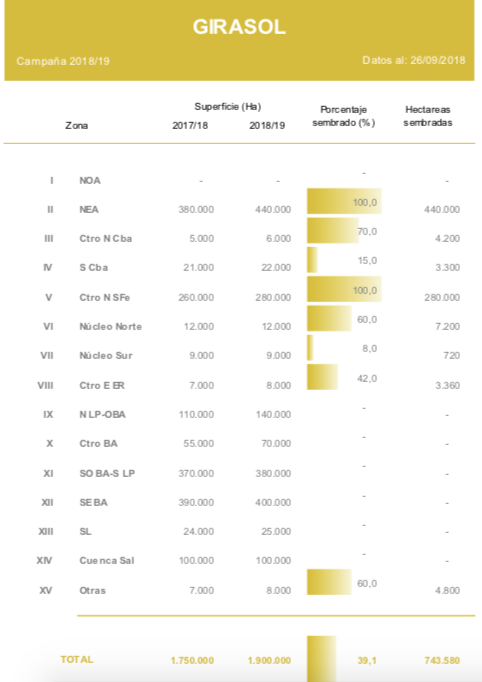 MANTENIENDO UN ADELANTO INTERANUAL DE 2,6 PUNTOS PORCENTUALES, LA SIEMBRA DE GIRASOL AVANZA SOBRE CÓRDOBA, SUR DE SANTA FE Y NORTE DE BUENOS AIRES..