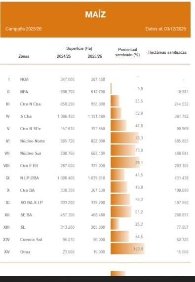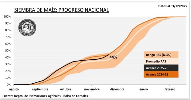 La siembra de maíz avanza al 44% con un escenario hídrico excepcional en todo el país