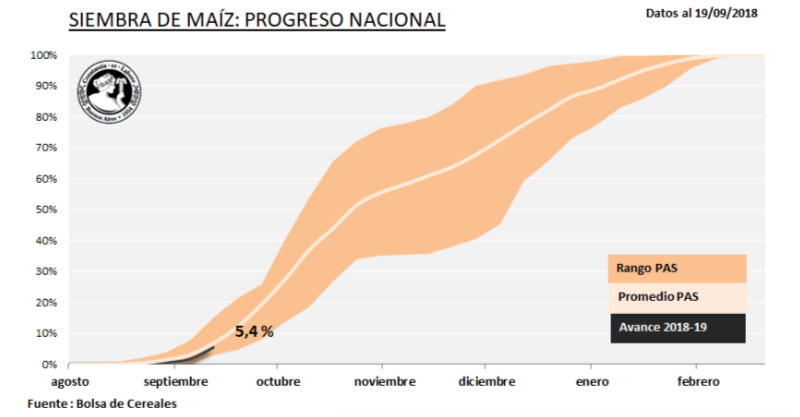 A LA FECHA LA SIEMBRA DE MAÍZ CON DESTINO GRANO COMERCIAL YA REFLEJA UN AVANCE DE 5,4 % DE LAS 5,8 MHA ESTIMADAS PARA LA CAMPAÑA EN CURSO.