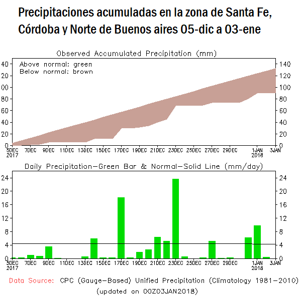 El aumento en la probabilidad de este fenómeno se dio continuadamente desde fines de 2017, apuntalando en primera instancia los precios en el mercado de Chicago hasta comenzado el mes de Diciembre. A partir de ahí, las lluvias acumuladas principalmente sobre el Centro-Sur de Santa Fe, Córdoba y Norte de Buenos Aires aliviaron en parte el déficit hídrico en muchas zonas, ejerciendo una presión bajista sobre el mercado de referencia norteamericano. Nuevamente a la vuelta del año, el pronóstico extendido más seco añade dinamismo al sube y baja en el mercado de este commodity.