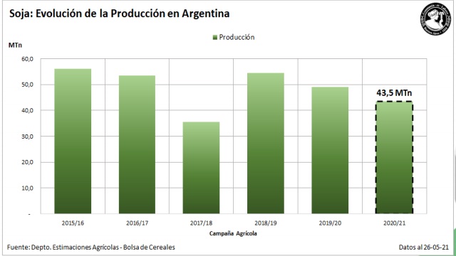 La cosecha cubre el 91,4 % del área apta. Rindes por encima de los esperados sobre el centro del área agrícola permiten elevar la proyección de producción a 43,5 MTn para la campaña 2020/21.