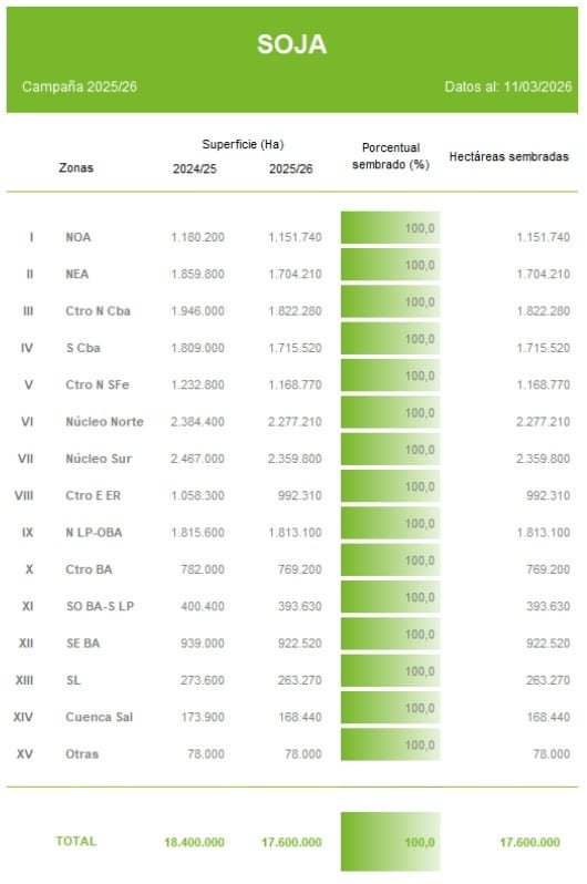 Sin embargo, el déficit hídrico persistente en el centro y sur bonaerense continúa siendo uno de los principales factores de riesgo para el cierre de la campaña.