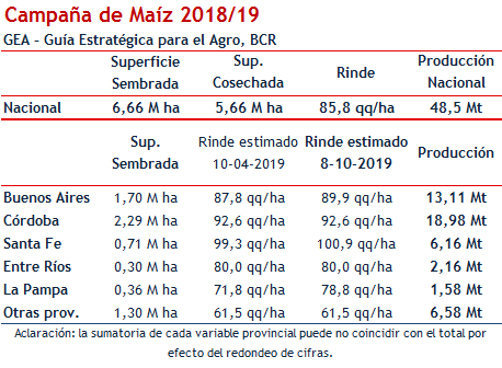 Buenos Aires, La Pampa y Santa Fe elevan al maíz a 48,5 Mtn