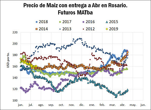 En el caso del maíz con entrega abril de 2019, su precio presente sólo ha sido superado los años 2012 y 2013, cuando los commodities agrícolas tocaron récords históricos en los principales mercados del mundo.