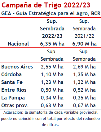 ¿Cuáles son las provincias que más hectáreas bajan de trigo?
