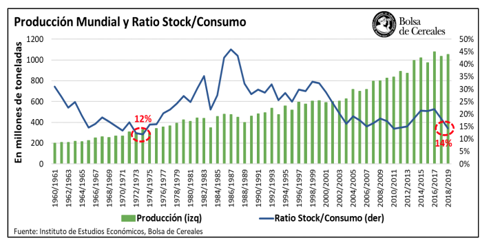 En el plano internacional, para la campaña 2018/19 se espera un nuevo decrecimiento de la relación stock/consumo de maíz, dando indicios de un mercado más tirante. Esta relación se ubicaría en torno al 14%, su valor más bajo en las últimas 44 campañas. La producción mundial se incrementaría respecto de la campaña pasada, pero sin alcanzar volúmenes récords. El crecimiento poblacional y la mejora en los ingresos continuarán impulsando la demanda de alimentos y con ellos el consumo de maíz, que por segundo año consecutivo se ubicaría por encima de los niveles de producción, resultando en una disminución de los stocks mundiales. El consumo para alimentación animal será el uso de mayor crecimiento durante la nueva campaña, de acuerdo al último informe mensual del Departamento de Agricultura de Estados Unidos (WASDE-USDA).