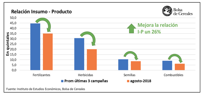 A la par de este aumento, los insumos más representativos de los costos de producción del cultivo mostraron subas sustancialmente menores, resultando en una mejora del 26% en la relación Insumo – Producto respecto al promedio de las últimas tres campañas, incentivando la inversión en tecnología.