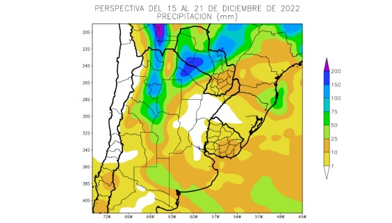- El oeste del NOA, la mayor parte de Cuyo, gran parte de la Mesopotamia, el este de la Región Pampeana y la mayor parte del Uruguay observarán precipitaciones escasas (menos de 10 milímetros).