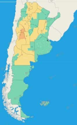 La Rioja: General Juan Facundo Quiroga – General San Martín – Rosario Vera Peñaloza -Chamical – General Belgrano – General Ocampo – Arauco – Capital – Castro Barros – Sanagasta – Chilecito – Famatina – General Ángel Vicente Peñaloza – Independencia – San Blas de los Sauces – Zona baja de Coronel Felipe Varela – Zona baja de General Lamadrid – Zona baja de Vinchina
