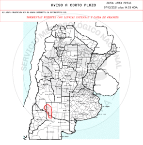 Lanzan Aviso Meteorológico por tormentas fuertes con lluvias intensas y caída de granizo