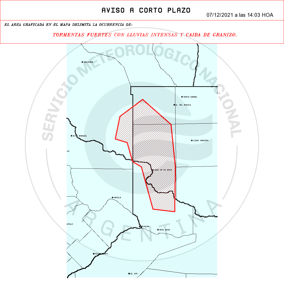 Lanzan Aviso Meteorológico por tormentas fuertes con lluvias intensas y caída de granizo