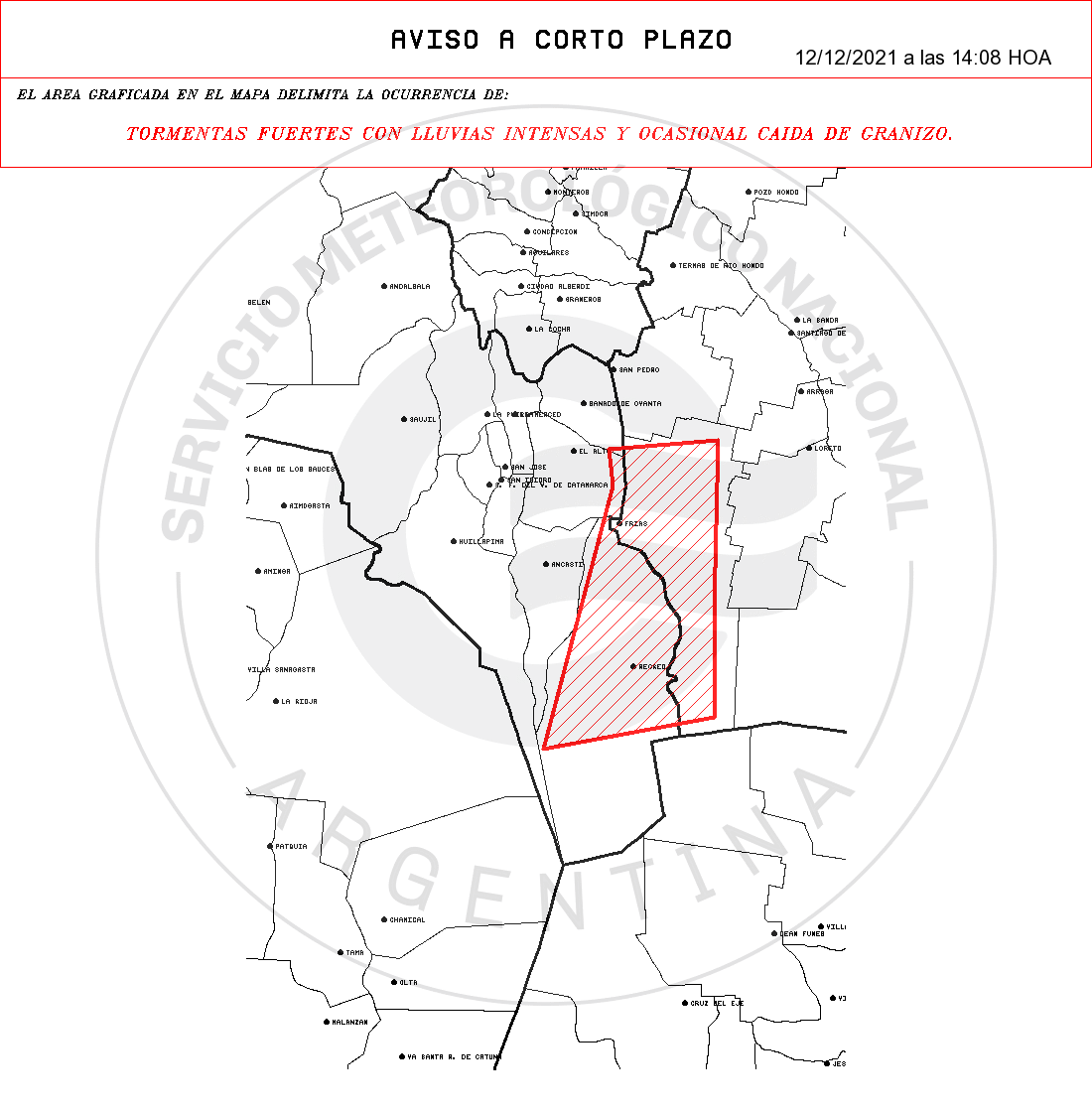 TORMENTAS FUERTES CON OCASIONAL CAÍDA DE GRANIZO