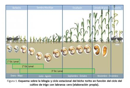 A partir del otoño-invierno de 2017, en cultivos de invierno se viene observando un aumento en los reportes de daños por la presencia de larvas de bicho torito, en establecimientos de productores del secano del partido de Villarino.