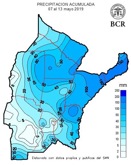 Si se suman el acumulado de abril y el que va de mayo para la localidad de Las Breñas hay un total de 420 mm. Es más del triple de la media para ese periodo que es de 130 mm.