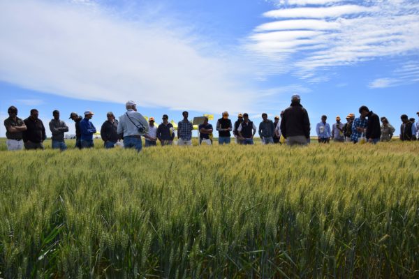 Latorre fue el encargado de guiar a los presentes por una serie de ensayos fenológicos donde las variedades pudieron verse en cuatro fechas de siembra. “En esta campaña llovió hasta fines de junio y luego se produjo una seca fuerte acompañada de muy bajas temperaturas. Este fue un año vernalizador. El macollo quedó muy abajo por lo que se dio un biotipo de trigo más chico por efecto del clima”, apuntó el referente de Nidera.