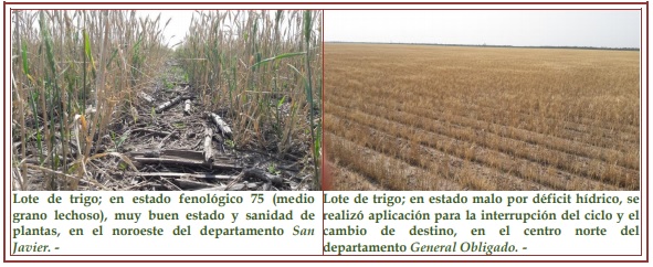 Todos los trigales se observaron en estado fenológico de fin de floración o reproducción, pero continuaron desmejorando por el sostenimiento y profundización del déficit hídrico, sumado a las elevadas temperaturas.