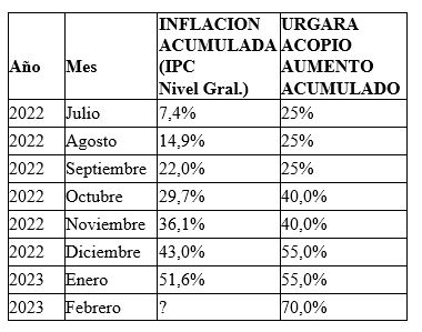 Adjuntamos la planilla con los fundamentos técnicos porque la Federación no emite comunicados sin fundamentos. A continuación se ve a las claras que los aumentos otorgados a los trabajadores de URGARA han sido mayores al índice de inflación.