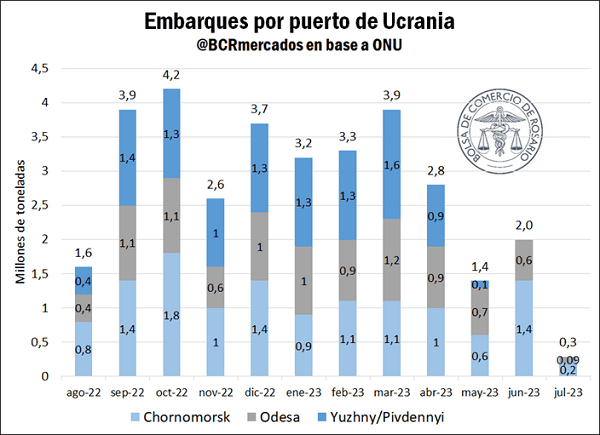 Esta semana se cumple un año del inicio del Acuerdo de Granos del Mar Negro, aniversario que coincide con la retirada de Rusia de esta iniciativa para la exportación de la cosecha ucraniana. Sumado a ello, autoridades ucranianas reportaron la ocurrencia de ataques rusos sobre la infraestructura del puerto de Odessa, lo que no hace más que amplificar la incertidumbre del contexto.