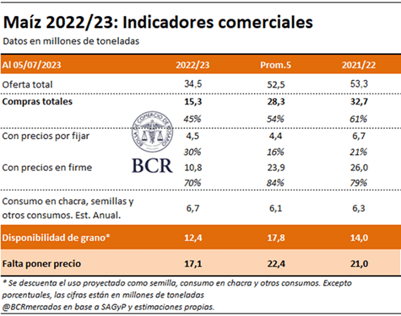 Con la cosecha de maíz superando el 70% de la superficie objetivo, aún resta ponerle precio a más de 17 Mt del cereal. Más aún, de este total cerca de 12 Mt de maíz 2022/23 no han sido comercializadas. No quedan dudas que una potencial interrupción de embarques de maíz desde Ucrania es un factor alcista para los precios.