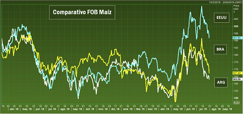 No obstante el dinamismo de las ventas externas, el pulso seco de los últimos días permitió generalizar las labores para lo que resta de la cosecha propiciando una caída estacional en los precios. Con una producción estimada en 50,5 millones de toneladas, se asume que la disponibilidad de cereal será suficiente para cumplir con las proyecciones de exportación. Sin embargo, se tiene por un lado que el sector exportador llevaba comprado hacia fines de julio un total de 26 millones de toneladas cuando las ventas comprometidas con el exterior ya ascienden a 27,2 Mt, sugiriendo la necesidad de acudir tarde o temprano a hacerse de más mercadería. Sin embargo, por otro lado, se tiene que el valor de referencia del cereal en la plaza local ronda los US$ 142/t hacia el cierre de la semana, cuando el FAS teórico (o capacidad de pago teórica) no supera los US$ 139/t, sugiriendo que de convalidar estos valores se estaría trabajando a contra-margen.