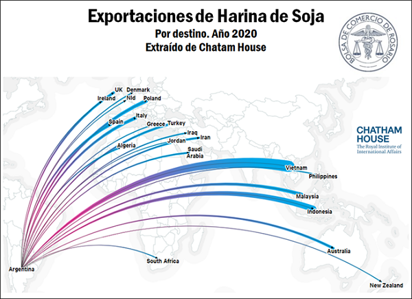 Por otra parte, muchos países miembro de la Unión Europea son importantes compradores de la harina de soja argentina. En el marco del Pacto Verde Europeo, este importante bloque comercial avanza con una nueva normativa en materia de deforestación que podría afectar las exportaciones. De acuerdo con el proyecto próximo a tratarse en el Parlamento de la Unión, todos los productos del Complejo Soja, entre otros productos agrícolas, deberán estar “libres de deforestación”. Es decir, no estará permitida la entrada de productos en el ámbito de regulación de la UE si se produjeron en tierras sujetas a deforestación o degradación forestal después del 31 de diciembre del 2020.
