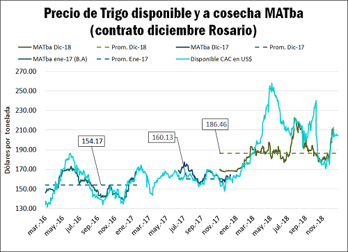La mejora en los envíos de diciembre es consecuencia de un mejor ritmo de negocios a cosecha catapultada por mejores precios. Para tener una idea de dicha magnitud, el precio promedio negociado por el futuro de MATba a diciembre en todo su período de listado fue de US$ 186,50/t. Este valor es un 16 % más alto que el precio promedio negociado para diciembre del año pasado en MATba de US$ 160,10/t. En el mejor ritmo de negocios a cosecha influyó también la eliminación de las restricciones a la exportación lo que permitió al sector exportador organizar la logística con anticipación. Esto vino acompañado de una mejor producción año a año.