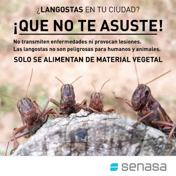 Córdoba – Ante la reciente aparición de focos de langostas voladoras en zonas urbanas y periurbanas de diferentes localidades del norte y centro provincial de Córdoba, desde el Servicio Nacional de Sanidad y Calidad Agroalimentaria (Senasa) se informa que estos insectos no representan ningún riesgo para la salud humana ni de los animales, dado que no transmiten enfermedades ni provocan lesiones.
