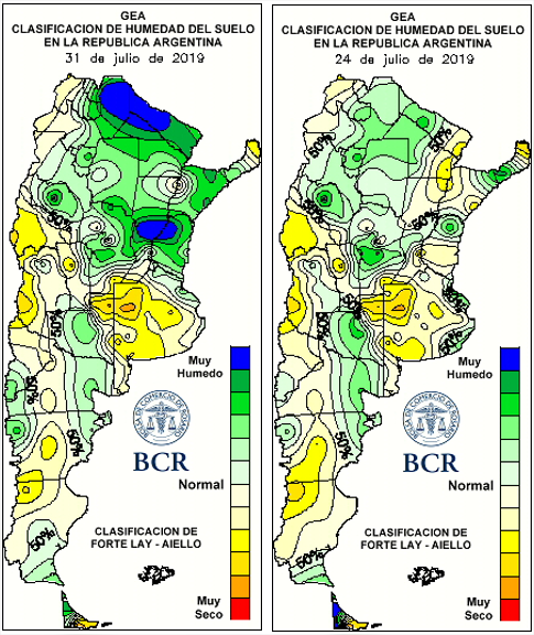 Hace 10 días se terminó de sembrar la mayor área triguera en la región núcleo, se tratan de 1,7 M de ha, un 9% más que el año pasado. El trigo este año es un fenómeno. En Pergamino, por ejemplo, explican que muchos productores que no hacían trigo, en este año pasaron a sembrar un 30% de sus campos, y los que sí venían haciéndolo tambien sembraron más. Y el agua juega a favor de este ciclo 2019/20. Las lluvias de la última semana fueron fundamentales para completar las estadísticas pluviométricas mensuales: 10 a 30 mm que estuvieron a favor de la franja este y del sector norte. Pero incluso los sectores con menos acumulados, cuentan con reservas en profundidad más importantes que el año pasado. En la región hay numerosos sectores con la napa a 75 cm del suelo.