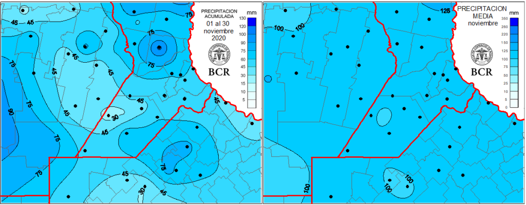 En la región núcleo noviembre estaba a punto de cerrar debiéndole el 70% de las lluvias mensuales, pero con este último evento la región alcanzó el 50% de la media mensual.