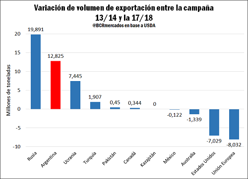 Si bien se espera que los países de la región del Mar Negro continúen ganando market share en el mercado internacional de trigo, ello sucede principalmente a costa de las ventas de Estados Unidos y la Unión Europea. En este sentido, Argentina tiene una ventaja competitiva al disponer de trigo muy temprano en el año (meses de diciembre/enero), en tanto que países como Rusia o Ucrania cosechan su cereal entre julio y agosto que le permite penetrar con fuerza en el primer semestre del año.