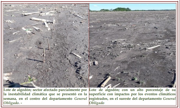 Semana marcada por precipitaciones y vientos fuertes, que afectaron seriamente el cultivo recién emergido, principalmente en zonas con suelos más sueltos y mayor porcentaje de arena en su textura, provocando la pérdida parcial de las plantas, en forma de manchones, en algunos lotes o en su totalidad en otros. A medida que las condiciones lo posibiliten, continuaría el proceso de siembra o resiembra, en las parcelas afectadas parcial o totalmente. Continuó el monitoreo de las trampas en los predios destinados a algodón, como así también la prevención del ingreso del picudo a los mismos, realizándose las aplicaciones en los bordes, en caso de necesidad. La Secretaría Nacional de Sanidad Vegetal (SENASA) estableció según Resolución SENASA N° 74 de 2010 como fecha obligatoria de siembra, los siguientes períodos: • “1° de octubre al 15 de noviembre Domo Oriental (Departamento General Obligado, Departamento Garay, Departamento San Javier, Departamento Vera al Este de la Ruta Provincial Nº 3 y el Sur de la Ruta Nacional Nº 98)”. 7 • “1º de noviembre al 15 de diciembre Domo Occidental (Departamento 9 de Julio, Departamento San Cristóbal, Departamento Las Colonias, Departamento Vera al Oeste de la Ruta Provincial Nº 3 y el Norte de la Ruta Nacional Nº 98)”.