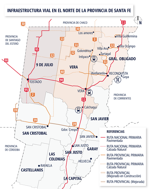En esta nota se detallan algunas de las obras de infraestructura que reclaman las entidades empresarias y representantes de los sectores de la producción, comercio e industria del norte de la provincia de Santa Fe. Nos referimos a obras viales, ferroviarias y de provisión de gas. Los pedidos tienen que ver con los problemas de competitividad que tiene el campo, el comercio, los servicios y las actividades industriales en dicha zona. La localización genera una “disparidad en las oportunidades para competir” por parte de aquellas empresas que se encuentran radicadas en zonas alejadas de los grandes centros urbanos.