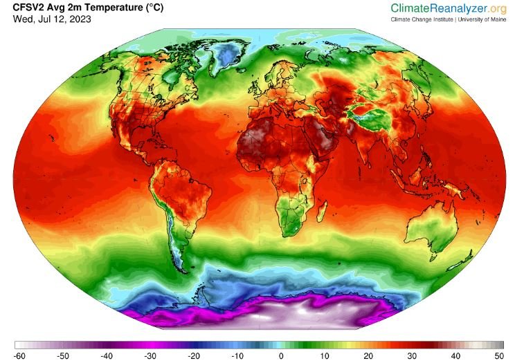 En julio de 2023, Europa experimentó temperaturas superiores a los 40 °C, incendios forestales, cortes de energía y se reportaron decenas de víctimas. En China, las temperaturas superaron los 45 °C en el suroeste, con trágicas consecuencias para la vida, los ecosistemas y la producción del país.  En América del Norte, las altas temperaturas superaron los 50 °C en el oeste, y en el estado de Arizona, algunas ciudades llevan más de 25 días con temperaturas que no descienden de los 35°C.