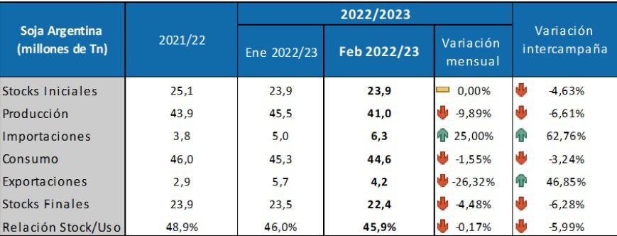 El USDA publica su informe de oferta y demanda de granos en un momento en el que los rendimientos comienzan a definirse en el hemisferio sur, ya con cierto pesimismo en voces de los privados ante la sequía en Argentina. Para la soja que producirá el país, el organismo proyecta 1,34 millones de toneladas menos de lo esperado por privados y la estima en 41 millones de toneladas, 4,5 millones menos de lo publicado en enero. La relación stock/consumo sería la menor en 11 campañas. Para Brasil, la estimación no difiere de lo esperado por privados y sería de 153 millones de toneladas.