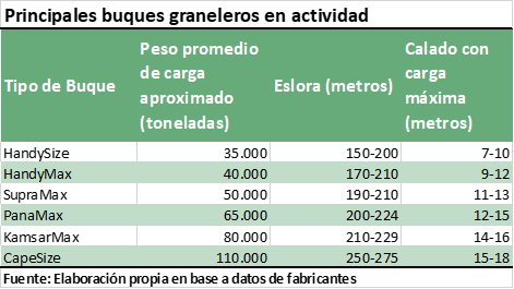 Uno de los principales aspectos a tener en cuenta a la hora de analizar la aptitud de las terminales portuarias para la carga y el despacho de granos y productos derivados, es la profundidad o el calado de los puertos de la zona, lo que determinará los tipos de barcos que pueden arribar y la proporción en que los mismos puede ser cargado. Las limitaciones que se presentan en el calado navegable de algunos puertos fluviales de nuestro país, hace que los buques de mayor porte no puedan completar sus bodegas.