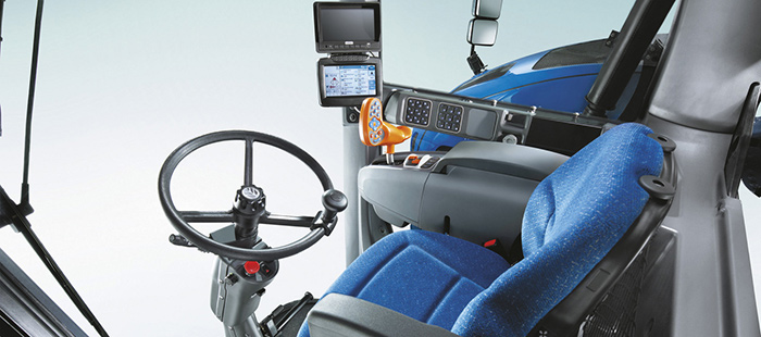 La cabina de las vendimiadoras fueron diseñadas con sistema de calefacción, asiento y volante ajustables, palanca multifunción integrada y de fácil acceso, lo que contribuye a mejorar el trabajo incluso en los viñedos nevados.