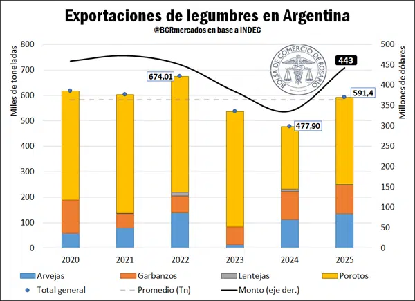 El complejo de legumbres genera más de USD 400 millones anuales en exportaciones y mantiene una fuerte orientación hacia los mercados internacionales.