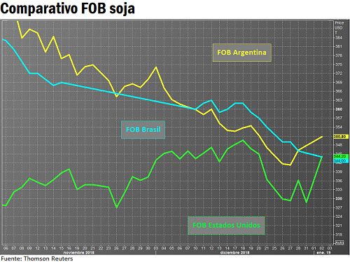 Las compras de soja nueva a fin de año se ubicaron un 46,8% por debajo de las adquisiciones a igual fecha del año 2017. La oferta, los productores, no encuentra motivación para vender a los precios actuales, mientras que por el lado de la demanda, los reducidos márgenes desalientan a la industria y el aumento de los precios FOB, desanima a la exportación.