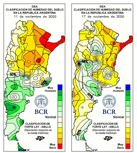 Para reponer las reservas de los suelos en las áreas más necesitadas hacían falta 100 a 150 mm y solo recibieron 30 a 60 mm en los últimos cuatro días. Las matemáticas son severas, no alcanzan para revertir el escenario. Pero las recientes lluvias permitirán reactivar las siembras de soja, que desde el fin de semana del 14 de noviembre se habían estancado. En esta campaña sin aportes extras de humedad del Pacífico, estas lluvias son claves para no quedar atrasado con las fechas de siembra.