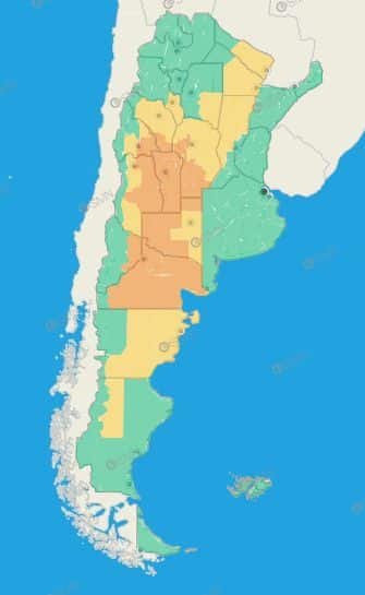 La Rioja: Chamical – General Belgrano – General Ocampo – Arauco – Capital – Castro Barros – Sanagasta – Chilecito – Famatina – General Ángel Vicente Peñaloza – Independencia – San Blas de los Sauces – Zona baja de Coronel Felipe Varela – Zona baja de General Lamadrid – Zona baja de Vinchina