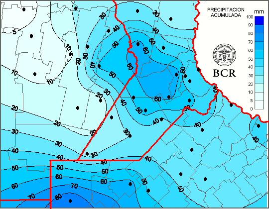 El evento dejó en promedio unos 35 mm en la región. Si bien dos de los cuatro focos de agua estuvieron en el NO bonaerense y centro S de Santa Fe, estas recargas fueron importantes para el NE bonaerense y sur santafesino que mostraban hasta la semana pasada reservas escasas a sequía. Esta vez el sector cordobés recibió la menor cantidad de agua, sobre todo en las localidades más mediterráneas. Bengolea, Hernando, Idiazábal y Colonia Almada quedaron con registros por debajo de los 8 mm.