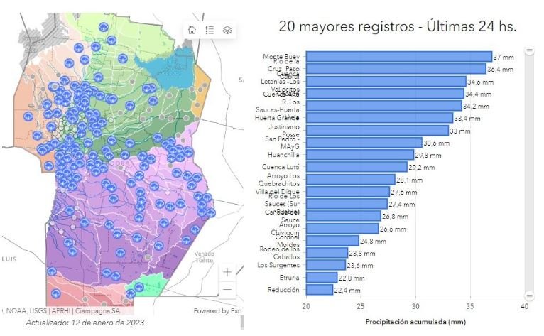 También en la provincia mediterránea, hubo localidades del sudoeste, en los departamentos Juárez Celman y Río Cuarto, donde se superaron los 50 mm, como sucedió en Vicuña Mackenna (52) y Estación Pavín (58). Se trata de una zona clave para la producción de maíz, cultivo del que Córdoba es la mayor provincia productora del país.
